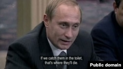 Тем более там же, в Астане, он произнес свою знаменитую тираду "мочить в сортире" террористов, и это затмило все остальное. Такова была вообще его предвыборная кампания в 1999 году, когда его вели к власти. Смотрите, чеченцы взрывают ваши дома, убивают ваших детей среди ночи, а я, Путин, – спаситель, буду мочить по сортирам.