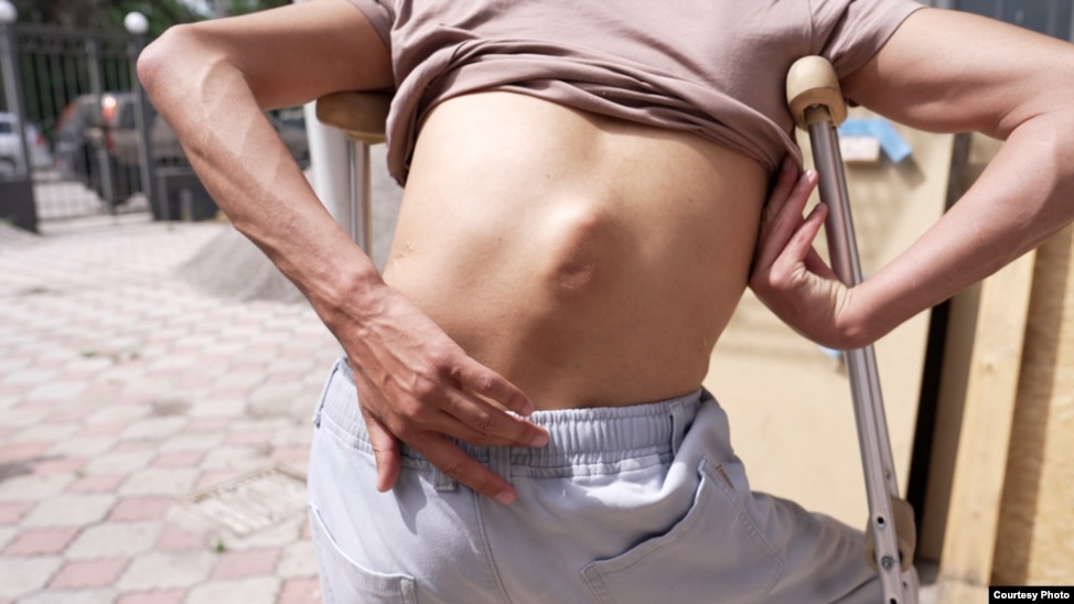 «Более двух месяцев я провел в больнице Джалал-Абада. Сделали томографию, еще что-то, но не выяснили. Наконец приехала комиссия из Оша, и когда сделали УЗИ, то оказалось, что сломаны не только два позвонка, но повреждены еще пять. Меня направили в Бишкек, я снова лег в больницу. Месяц меня лечили, укрепили здоровье и сделали операцию. Но это не дало результата. Так меня прооперировали три раза. Мой младший брат прилетел из Москвы и 3,5 года был рядом, помогал мне. После третьей операции очнулся в реанимации, помню, что с испугу дернул резко ногой, с тех пор правая нога перестала двигаться. Врачи сделали все, что могли, но мне не стало лучше. Сейчас сухожилие на ноге все еще разорвано. Я вернулся в Джалал-Абад и пролежал там в больнице больше двух лет, уже не знал, что мне делать. Сейчас у меня до сих пор сломаны позвонки, тазовые кости, а кости ноги гниют. Мне сказали, что после десятичасовой операции в Турции, если установят искусственные позвонки, то я смогу ходить и жить. Через шесть месяцев сделают операцию на ноге. Если я не смогу ходить, мне поставят протез. Сказали, что цена двух операций 35 тысяч долларов. Сейчас на операцию на позвоночнике нужно 28 тысяч долларов. До этой суммы не достает 15 000 долларов».