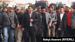 В это время министр внутренних дел Зарылбек Рысалиев препирался с удивительно похожей на него женщиной. Другая женщина сидела, а кровь текла на асфальт. Я не смогла увидеть ее лица - только шлепанцы на носках.
